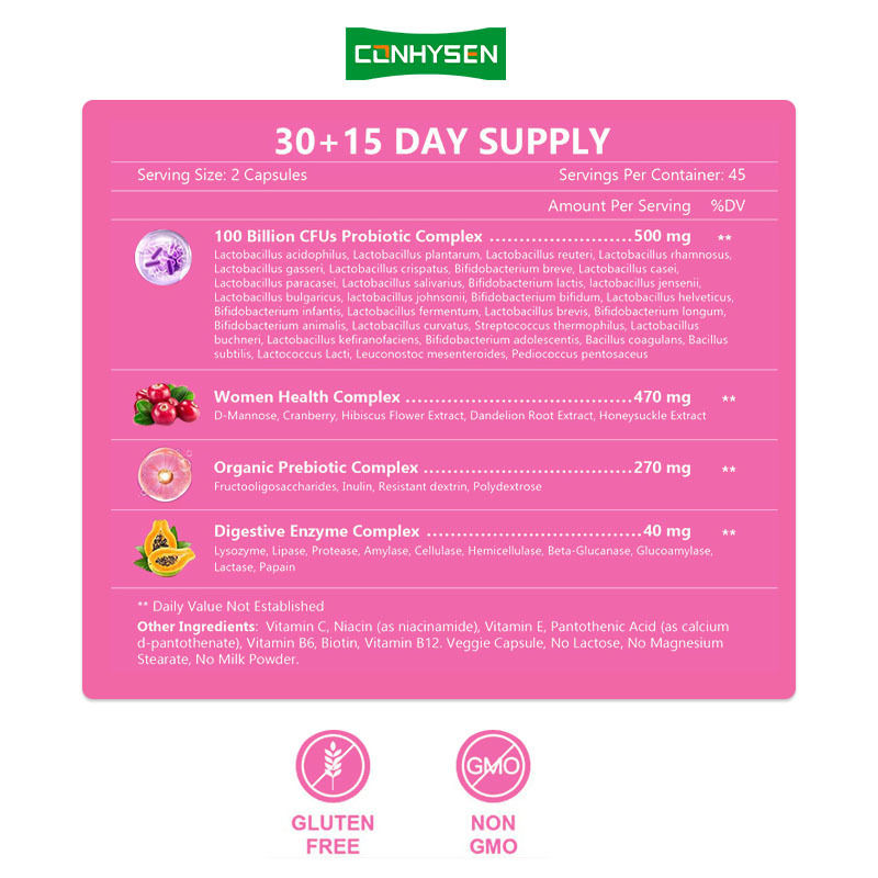본 제품은 유산균이 위산 환경을 통과한 후에도 높은 활성을 유지하고 장에 도달하여 최적의 효능을 발휘할 수 있도록 고급 산 저항성 임베딩 기술을 사용합니다. 또한, 첨가된 프리바이오틱스는 유산균에 지속적인 에너지를 제공하여 장내 유익균의 우위를 더욱 공고히 합니다. 생리 또는 임신과 같은 특별한 시기의 여성이나 매일 건강 관리에 관심이 있는 현대 여성 모두, 여성 유산균을 매일 2캡슐 섭취하면 몸과 마음을 안에서부터 건강하게 가꿀 수 있으며, 건강과 자신감을 항상 곁에 둘 수 있습니다.ODM/OEM 서비스
