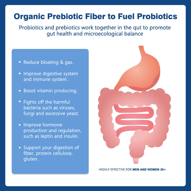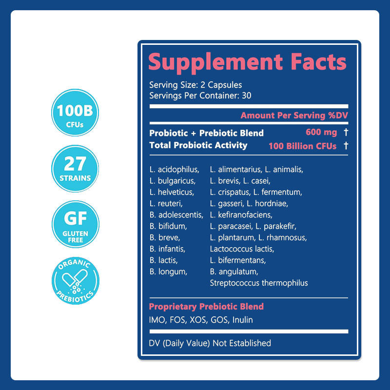 Probiotic Prebiotic Capsules are a cutting-edge dietary supplement designed to support and improve intestinal health by integrating the dual benefits of probiotics and prebiotics into a convenient capsule이 강력한 듀얼 효과의 공식은 미생물 균형을 촉진하고 소화 기능을 향상시키고 면역력을 높이고 전반적인 복지에 기여하기 위해 시너지 작용을합니다.각 캡슐 에는 임상 연구 품종 에서 얻은 수십억 가지의 활성 프로바이오틱스 (라크토바실리와 비피도박테리아 등) 가 들어 있습니다, 고품질의 프리바이오틱스 섬유와 함께 이 유익한 박테리아를 먹여 살립니다.
