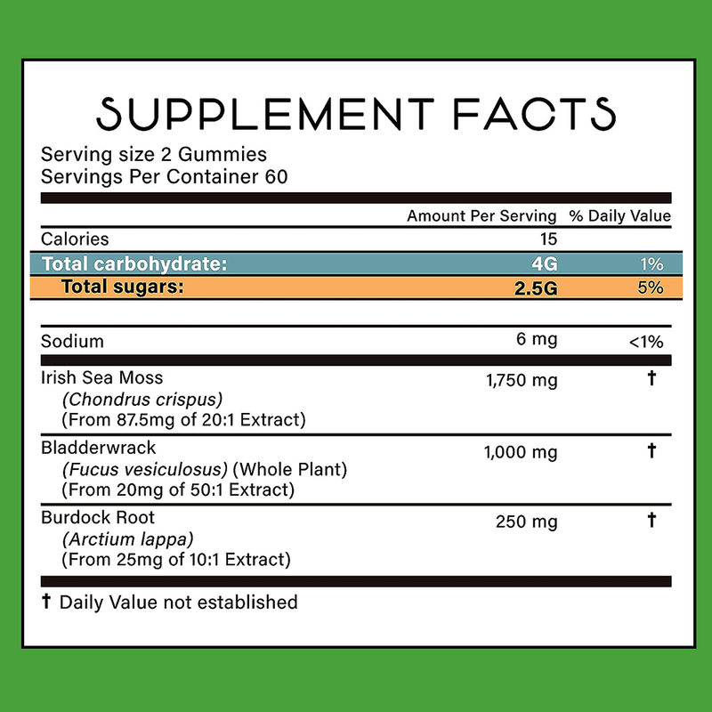 아이리시 바다 모스, 블러더브랙, 버드크 뿌리, 나트륨