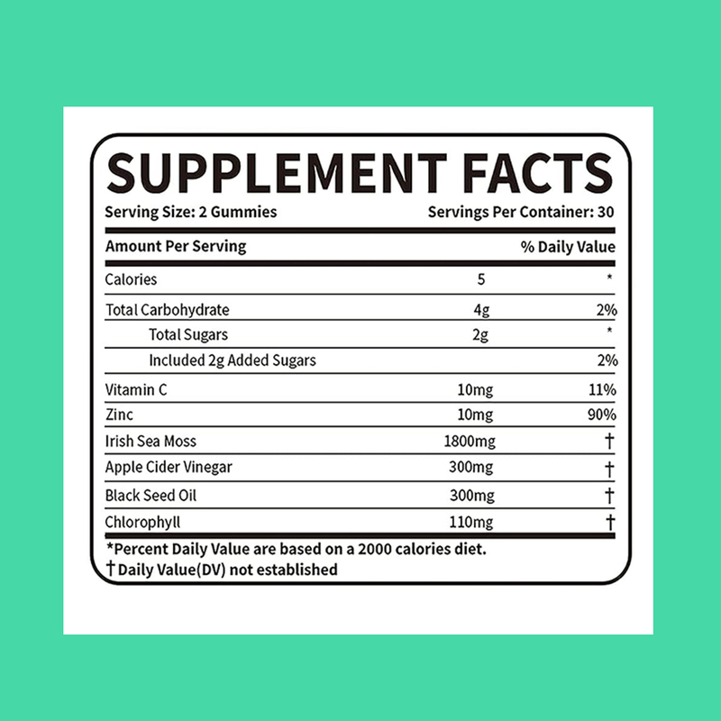 아일랜드 해초, 사과 사이다 식초, 아연, 비타민 C, 엽록소, 블랙 시드 오일