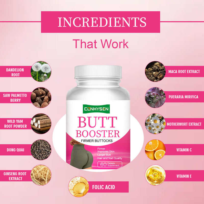 이 제품 Butt Booster Tablet은광둥 칸센 제약 기술 회사풍부한 식물성 에스트로겐과 콜라겐 성분을 함유하고 있습니다. 엉덩이의 지방 세포의 성장과 분포를 자극할 수 있습니다.자연스럽고 안전하게 엉덩이의 부피를 늘리는 데 도움이 됩니다.계속 복용하면 엉덩이가 더 뚱뚱하고 둥글어지고 더 매력적인 곡선이 생기게 됩니다.
