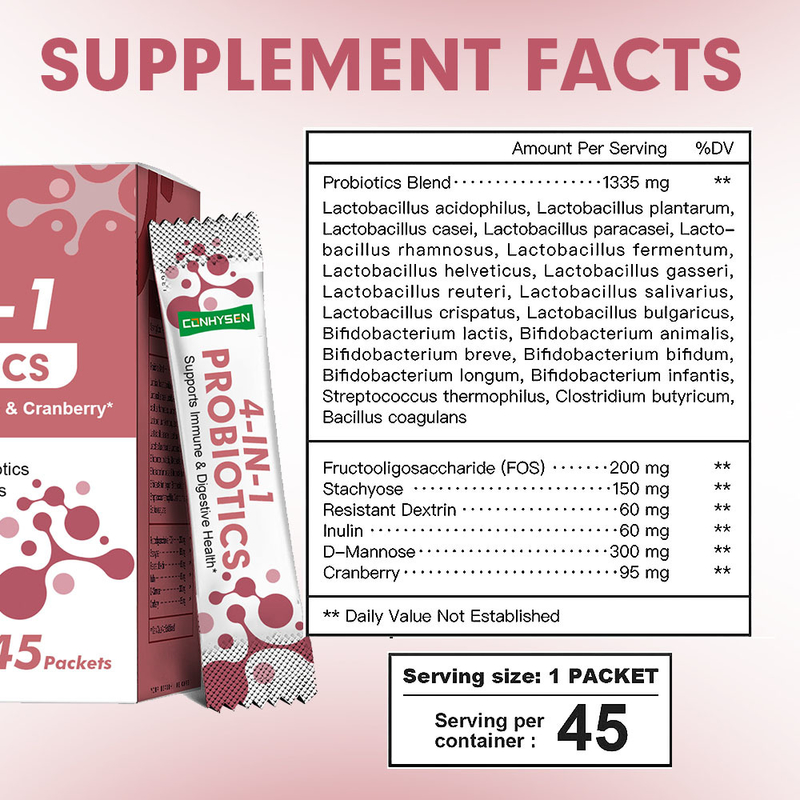 프로바이오틱스 혼합물, FOS, 스테키오스, 내성 덱스트린, 인울린, D-마노스, 크랜베리