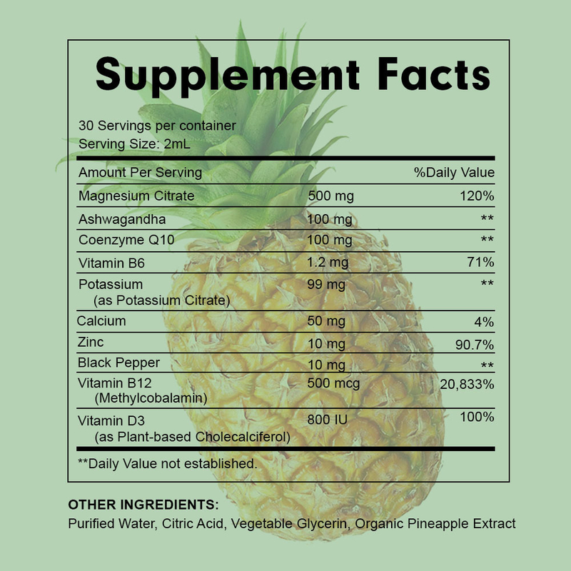 마그네슘 시트라트, 아슈바한다, 코엔질 Q10, 비타민 B6, 칼륨, 칼슘, 아연, 흑추, 비타민 B12, 비타민 D3